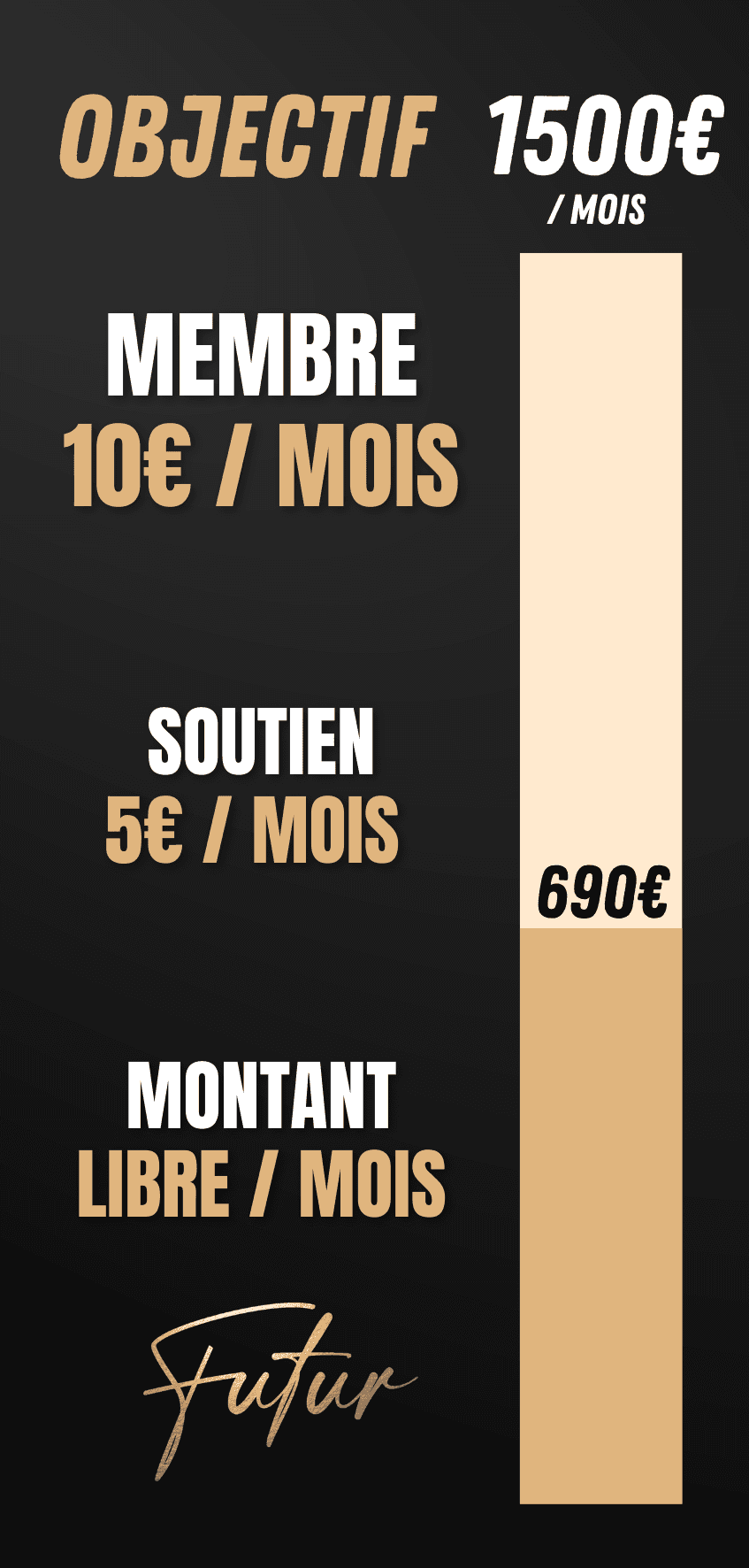Atteindre 1 500 € de dons mensuels, c’est garantir la réussite de nos objectifs pour 2026 et soutenir nos campagnes pour l’année à venir.