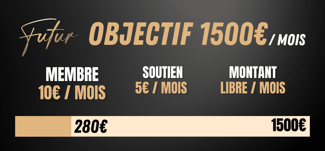 Atteindre 1 500 € de dons mensuels, c’est garantir la réussite de nos objectifs pour 2026 et soutenir nos campagnes pour l’année à venir.