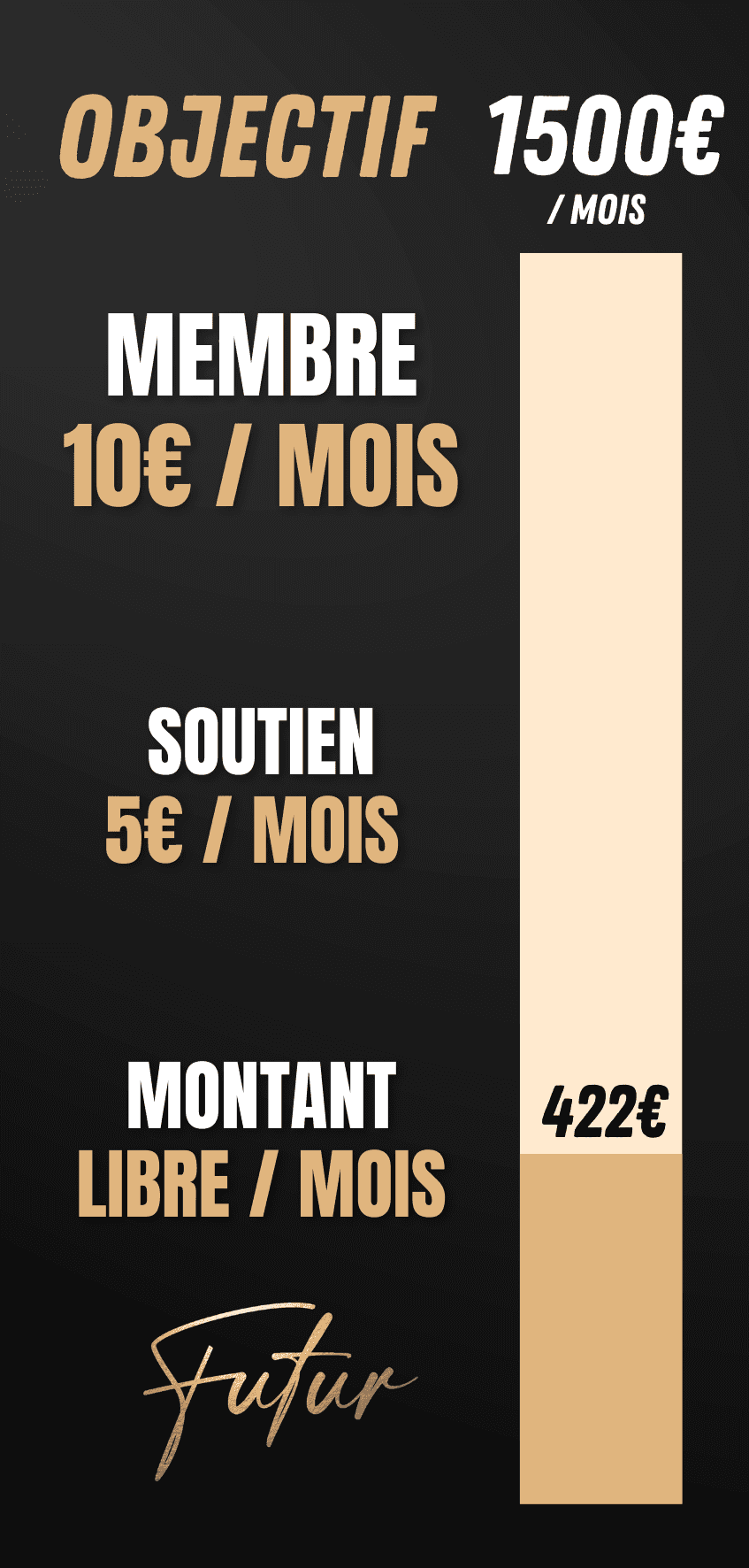 Atteindre 1 500 € de dons mensuels, c’est garantir la réussite de nos objectifs pour 2026 et soutenir nos campagnes pour l’année à venir.